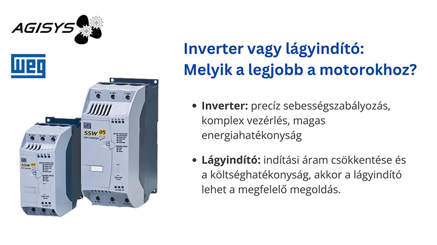 A lágyindító egyszerűbb, de hatékony megoldás az indítási áram csökkentésére. Költséghatékony, könnyen beállítható és kis helyigényű. Akkor érdemes választani, ha nincs szükséged sebességszabályozásra, és a költséghatékonyság fontos szempont.