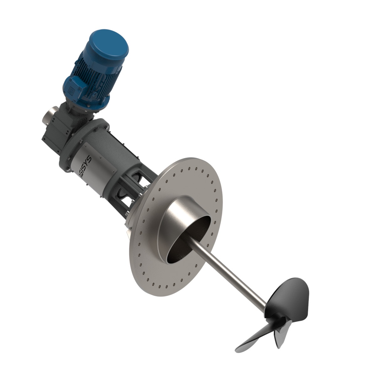 Oldalkeverő nagyméretű tartályok töltetének homogenizálására, zagyok kiülepedésének megakadályozására.
